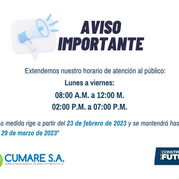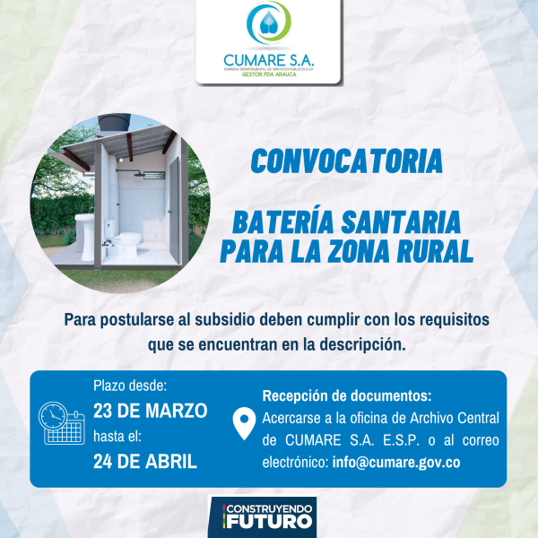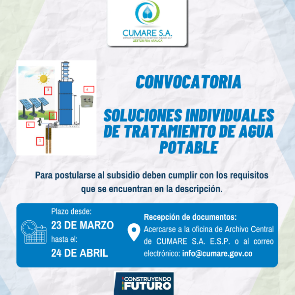 La Empresa departamental de Servicios Públicos de Arauca CUMARE S.A. E.S.P. informa que en virtud de la convocatoria pública para presentación de