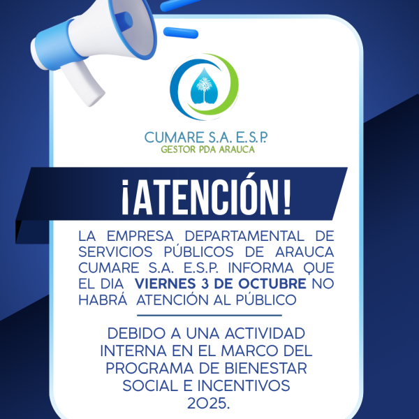 La Empresa Departamental de Servicios Públicos CUMARE S.A. E.S.P. informa que, en el marco del Programa de Bienestar Social e Incentivos 2025, no ha