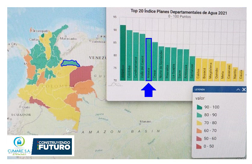 El DNP a través de la subdirección de Agua y Saneamiento, midió el seguimiento del desempeño de los Planes Departamentales (PDA) para el Manejo Empresarial de los Servicios de Agua Potable y Saneamiento Básico, arrojando que La Empresa Departamental de Servicios Públicos de Arauca CUMARE S.A. E.S.P., Gestor del PDA Arauca obtuvo una calificación de 87.10% para el año 2021, quedando clasificado en un Quinto lugar, con Nivel Alto; de acuerdo a la capacidad institucional del Gestor y los resultados a nivel de gestión de proyectos que redundan en la buena prestación de los servicios públicos de APSB.
